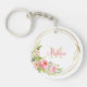 Pink Floral Roses - Gold Frame - Personalized Keychain