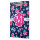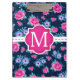 Pink Floral Roses Pattern Custom Monogram Clipboard