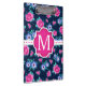 Feminine and chic pink & blue flowers pattern with customizable monogram.
