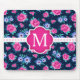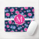 Pink Floral Roses Pattern Custom Monogram Mouse Pad