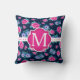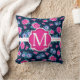 Pink Floral Roses Pattern Custom Monogram Throw Pillow