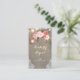 Rustic business card - wood, lace, string lights, pink flowers bouquet
