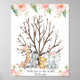 Sweet safari baby animals thumbprint guestbook sign featuring some lovely floral arrangements, four cute jungle watercolor animals and a brown bare tree.