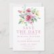 Pink and a bit of yellow watercolor floral wedding save the date card announcement. Customize names, dates, and information.