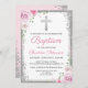 Pink Floral Silver Glitter Girl Baptism Invitation