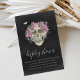 A spooky chic bridal shower enclosure card design featuring a floral skull illustration topped with pink orchid watercolor flowers on a smoky black background. Add this display shower enclosure card to your bridal shower invitations to encourage guests to bring their gifts unwrapped.