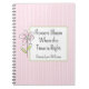 Start your day on a positive note with this personalized spiral notebook that features an illustration of a simple wildflower on a pink pinstripe background with a customizable inspirational message and name. Add a favorite quote or inspirational message plus a name to create a truly one-of-a-kind desk accessory. Perfect for work, home, or school, this notebook is sure to brighten your day.
