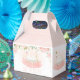 Sweet swan princess themed birthday party favor box featuring a white swan, gold crown, pink banner and pink floral arrangements. This swan princess birthday favor box is ideal for a girl's princess swan birthday party.