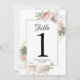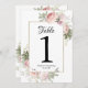 Gold frame and pink roses surround your table number. Table is written above in a fancy text. Two lines of text below let you personalize the ocassion.