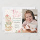 Pink Floral Tea For Two Birthday Photo Invitation