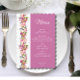 Elevate your wedding reception with this stunning Pink Floral Wedding Menu, featuring delicate watercolor florals in soft pink hues and an elegant script font for a timeless, romantic touch. Perfect for garden, vintage, or classic wedding themes, this menu will beautifully complement your table setting while impressing your guests
