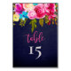 Pink Floral Navy Wedding Table Numbers Double Sided. Help your guests easily find their way with these boho pink floral navy chalkboard double sided table number cards. Easily to add the numbers! Features a beautiful romantic vibrant spring pink and hot pink watercolor painted roses, botanical floral bouquet with green leaves and feathers on navy blue chalkboard and elegant calligraphy font script!
