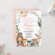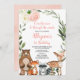 Pink floral woodland animals girl 1st birthday invitation