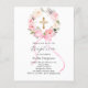 An elegant white background, decorated with watercolored pink and white flowers in a wreath, a pink bow and a golden cross. Personalize and add a name and details.