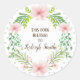 Pink Floral Wreath on White with Gray Hearts Classic Round Sticker