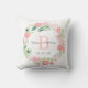 Beautiful Floral Wreath Personalized Wedding Throw Pillow | Pink Green Gray White. Design by Elke Clarke©. Available at www.zazzle.com/monogramgallery. Rustic wedding theme with pretty shades of pink, a floral wreath on a white background. Customizable with bride and groom names in gray script font, married last name initial in pink and wedding date. Beautiful design is perfect for blush pink and white wedding and wedding anniversary keepsake gifts and other special occasions where monogram themes accessories add to the decor. Use edit menu to change colors or visit our store for more designs and color options.