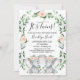 Pink Floral Wreath Twin Elephant Baby Shower Invitation