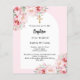 Pink florals arch gold girl baptism invitation
