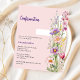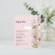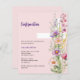 A blush pink background, with a large white cross decorated with pink and purple flowers. Personalize and add the name and details details.