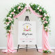 Pink watercolor florals, gold cross girl baptism welcome sign. Welcome your guests to your daughter's baptism with this exquisitely designed welcome sign. The design offers a refined and elegant touch to the celebratory atmosphere. It showcases a delicate arrangement of multi-toned pink watercolor florals gracefully blooming at the base of a gold circle. Within this beautiful scene, a prominent gold cross adds a spiritual and celebratory focal point. The back of the sign features a solid pink, providing a gentle and complementary backdrop. This sign is perfect for greeting loved ones and setting a tone of reverence and joy for your daughter's special day.