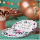 Celebrate in style with these blooming paper plates inspired by Central European folk art. Featuring circular arrangements of pink and purple flowers with green leaves, they come with the text "Boldog névnapot"—fully customizable for your special occasion.