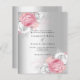 A faux silver looking background. Decorated with large pink and white roses. Personalize and add your names and wedding details.