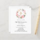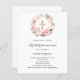 An elegant white background, decorated with watercolored pink and white flowers in a wreath and a golden cross. Personalize and add a name and details.