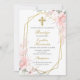 Pink flower Baptism invitation girl in Spanish, invitación de bautizo para niña