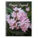 The front of this journal spiral notebook features my original photograph of a group of pink Oleander flowers blooming in a dark background. Bible Scripture from Matthew 21:22 is also on the journal.