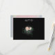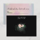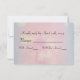 A classy and elegant wedding rsvp. The front has an illustration of some delicate pink blossoming flowers with green swirlies and leaves on a black background with some light gray shading around the flowers to accentuate and illuminate. The back has an image of some faded pink daisies with a misty pink background.
