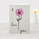 This card shows a single bright fuchsia-pink flower centered on a plain white background, outlined in black with gentle line shading on each petal. The flower’s middle is a dark round circle filled with fine lines that radiate outward, giving it a little extra detail. A thin green stem holds the bloom up, with two curved green leaves that have light shading and visible veins. Around the flower, the text reads “I love you” in black cursive-style lettering, with “I” in the upper left, “love” sweeping under the flower, and “you” placed in the lower right. The slightly uneven lines make it feel human and sincere, like someone took a moment to draw it just for you. It’s a simple image, but it carries a lot of warmth and makes a sweet choice for romance or close friendship 🥰❤️.