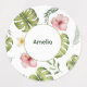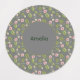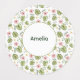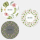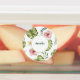 The labels, which are a verdant green, are specifically for items featuring a pink flower pattern. These green labels are designated for identifying merchandise adorned with a design that incorporates pink flowers.