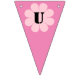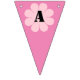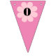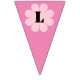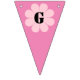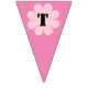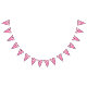 Flower power baby pink bunting flags with, “Congratulations.” Text and background flag color can be customized.