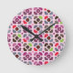 pink flowers and owls pattern round clock