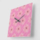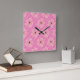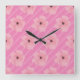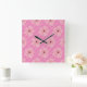 Pink Flowers And Stripes Wall Clock