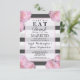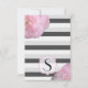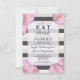 Pink Flowers & Black, Gray, & White Stripes Invitation