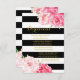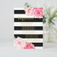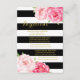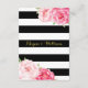 Direction card inserts for wedding in black and white stripes pattern with rustic pink watercolor flowers and gold handwritten style lettering. Customize these cards with your wedding directions, accommodations or other information to be included with your wedding invitations, also perfect for anniversary parties or birthday parties. Available in a wide range of matching wedding products.