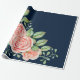Pink Flowers Blue Wrapping Paper