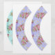 These DIY cupcake wrappers have pink vintage flowers with teal and blue backgrounds on them, and they're printed back and front with different designs to choose from. Cut them out, then wrap around the cupcakes to decorate them for a birthday party or tea party theme.