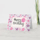 Pink Flowers Cute Whimsical Pattern Birthday Card