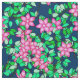 Sprays of pink flowers and soft green leaves on a dark blue / navy background - digital design