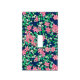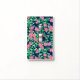 Sprays of pink flowers and soft green leaves on a dark blue / navy background - digital art