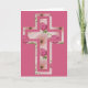 Pink Flowers Design Cross Christian Greeting Card