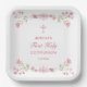 Pink Flowers First Communion Square Paper Plates