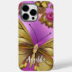 Pink Flowers Gold Butterflies Personalized Name Case-Mate iPhone Case
