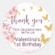 Pink Flowers Gold Butterflies Script Thank You Classic Round Sticker