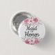 Pink Flowers maid of honor Button