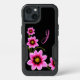 Elegant Otterbox brand Samsung Galaxy S8 case done in black, with big pretty bright pink flowers. A pink one letter monogram is ready to .