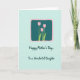 This card features a calm pastel mint-green background with a centered rounded rectangle panel outlined in bright pink. Inside the panel, a deep teal field holds three simple spring flowers in soft pink on slim lime-green stems, leaning slightly as if sharing a gentle moment ❤️. The flowers sit in the upper part of the panel, leaving space below for the message. The main text reads “Happy Mother’s Day.” on the first line, with “To a Wonderful Daughter” placed underneath in smaller lettering. The lettering appears in a casual handwritten style and is colored a muted deep green that matches the calm palette. The overall layout feels light and affectionate, like a quiet hug between close family members 🌼. The pink border is thin and even, framing the teal center with rounded corners.
