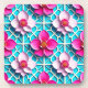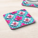 Pink Flowers on a Geometric Blue Background Beverage Coaster